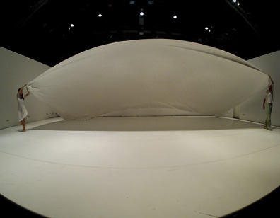- Researching the scenographic realm throughout use of tissues beyond the limits of a specified performance space. Experiencing the potential of fabrics to generate, define and to further transform spaces.