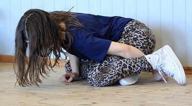 She started to study dance at ‘Balance-1’ in Berlin for 3 years, (Berlin in that time had no good education to offer...) already doing her own choreographies in school and for Tanztage Berlin. In her final school performance she ripped her cruciate ligament in the knee, starting her professional career on crutches. In 2000 she met Martin Clausen and after falling in love they founded the group TWO FISH, which became famous for developing and presenting pieces in Flats. This group has produced more then 16 dance/ theatre pieces, which were and are presented across Germany and abroad. In 2012 they stopped the label. During that time Angela developed her own solo practice, starting to find translations of philosophical questions into movement material and states, finding the un-doing and listening that is still the core of her teachings. Dealing, working and researching about movement creation and the relation between the performer and his/her performed material; focusing on how to live the formulations of the body fully and not fall into traps of representations and how to develop a mutateable body that has the possibility to unfold in many ways and at the same time remain attentive to its shifting meaning.