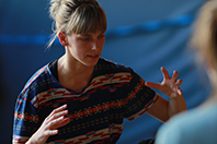 Diana Thielen is a dancer/performer, teacher of the Axis Syllabus, dedicated feminist, and student of education and gender studies, based in Berlin, Germany. She graduated from Salzburg Experimental Academy of Dance/SEAD in 2008 and is teaching workshop/classes/ intensives in Contemporary dance, CI/partnering and Yoga in Berlin and all around in Europe. As a movement activist Diana is involved in organizing gatherings exploring the intersection of dance and body politics and shares her intersectional inquiry and fascination with the human body in all its expressions on her blog movementactivism.com. Currently Diana is collaborating with the director/performer Alisa Tretau, with whom she already worked and performed in the (queer-) feminist and sex-positive Installation "Sweet Peep Salon", Berlin 2016. Together with performer Sarah Bouars she got invited to perform the duo “2 feminist perspEGGtives” at the International Feminist Art Festival Chouftouhonna 2017 in Tunis/Tunisia. As a person who loves animals, especially cats and dogs, Diana currently explores the idea of founding a (queer-)family, which isn’t limited to human beings, but expands care-taking to any sentient being.
